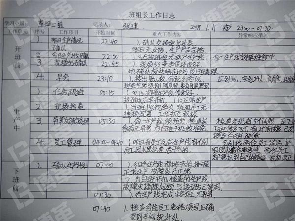 b)通過《班組長工作任務(wù)》的學(xué)習(xí),班組長根據(jù)實際工作編寫工作任務(wù)表并填寫工作日志: