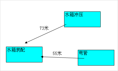 分析鋁水箱車間物流示意圖發(fā)現(xiàn),鋁水箱沖壓至裝配工序物流距離73M,彎管工序至裝配車間55米。且存在多點分散生產(chǎn)、搬運距離長;生產(chǎn)信息溝通不便,在制品多;生產(chǎn)面積沒能合理利用等問題,因此重新調(diào)整生產(chǎn)布局,簡化物流路線。